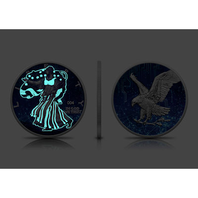 Die American Eagle 1 Oz Feinsilbermünze wurde aufwendig coloriert und mit einem Glow in the Dark Effect versehen.