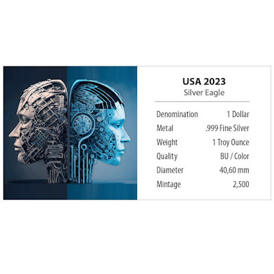 <<< USA - 1 USD Silver Eagle Künstliche Intelligenz (1.) Mensch oder Maschine - 1 Oz Silber Color | |