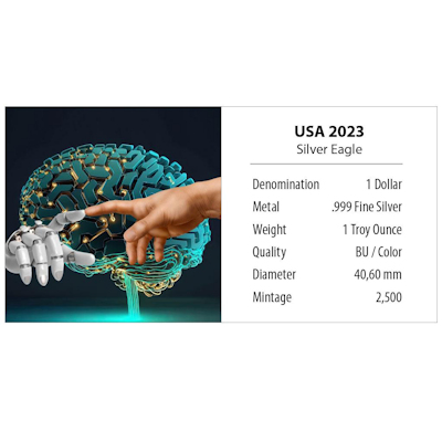 <<< USA - 1 USD Silver Eagle Künstliche Intelligenz (2.) Vernetzung - 1 Oz Silber Color | |