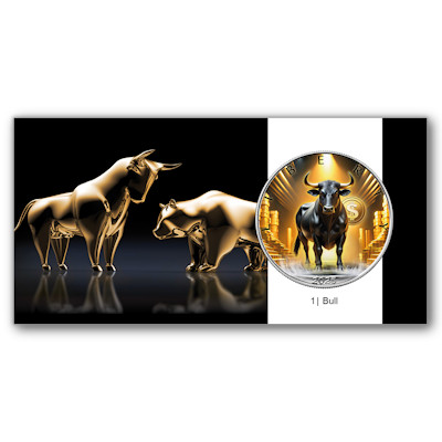 Der American Silver Eagle wird neben der Stempelglanz Variante auch in der höchsten Prägequalität Proof geprägt. Die Proofmünzen sind gekapselt, tragen ein Mintmark und haben ein mattes Motiv auf verspiegeltem Hintergrund. Die Ausgabe erfolge im Samtetui mit Echtheitszertifikat. Die Farben sowohl vom Etui als auch vom Zertifikat verändert sich mit der Zeit: 1986 bis 1993: lila, 1994 bis 2000: dunkelbalu, seit 2001 blau. Die Mintmarks zeigen den Standort der jeweiligen Prägeanstalt: S für San Francisco, P für Philadelphia und W für New York Beschreibung zur Münze: Silver Eagle 2025 – Dollar Bulle: Exklusive Farbprägung in Silber1 Oz Silber mit beeindruckendem BullenmotivDie Silver Eagle - 2025 Dollar Bulle Münze besteht aus 1 Unze reinem 99,9% Silber und beeindruckt mit einer farbigen Gestaltung auf beiden Seiten. Diese exklusive Ausgabe ist weltweit auf nur 5.000 Exemplare limitiert. Symbol des BullenmarktesDas Design zeigt einen imposanten Bullen, der für den wirtschaftlichen Aufschwung und steigende Kurse steht. Im Hintergrund ergänzen ein Dollar-Zeichen sowie glänzende Goldbarren die Szenerie. Detailreiche Rückseite mit WeißkopfseeadlerAuf der Rückseite präsentiert sich eine goldene Darstellung des amerikanischen Weißkopfseeadlers mit einem Eichenzweig in seinen Klauen. Das Motiv wird umrahmt von den Inschriften „UNITED STATES OF AMERICA“, „ONE DOLLAR - 1OZ. FINE SILVER“. Exklusive Präsentation und limitierte AuflageDie Silver Eagle - Dollar Bulle 2025 wird in einer schützenden Münzkapsel geliefert und enthält eine Produktkarte. Diese Sammlermünze ist ein begehrtes Highlight für Investoren und Münzliebhaber. Technische Daten: Ausgabeland: USA Prägeanstalt: The United States Mint Ausgabejahr: 2025 Nennwert: 1 USD Material: Silber Gewicht: 31,10300g Durchmesser: 40,60 mm Auflage: 5.000 Stück Prägequalität: Stempelglanz, beidseitig coloriert Verpackung: Gekapselt mit Produktkarte |