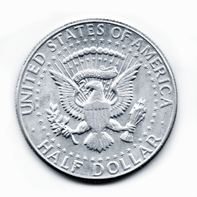 1964 wurde das Half-Dollar Motiv auf John F. Kennedy geändert. Die Münze ist 12,5 Gramm schwer und besteht aus 900er Silber.