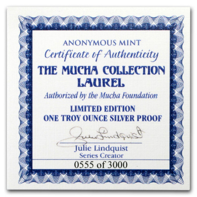 <<< USA - Alfons Mucha Kollektion Laurel - 1 Oz Silber Proof | |