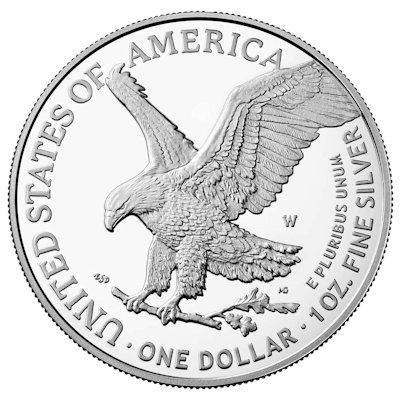 Der American Silver Eagle wird neben der Stempelglanz Variante auch in der höchsten Prägequalität Proof geprägt. Die Proofmünzen sind gekapselt, tragen ein Mintmark und haben ein mattes Motiv auf verspiegeltem Hintergrund. Die Ausgabe erfolge im Samtetui mit Echtheitszertifikat. Die Farben sowohl vom Etui als auch vom Zertifikat verändert sich mit der Zeit: 1986 bis 1993: lila, 1994 bis 2000: dunkelbalu, seit 2001 blau. Die Mintmarks zeigen den Standort der jeweiligen Prägeanstalt: S für San Francisco, P für Philadelphia und W für New York Beschreibung zur Münze: