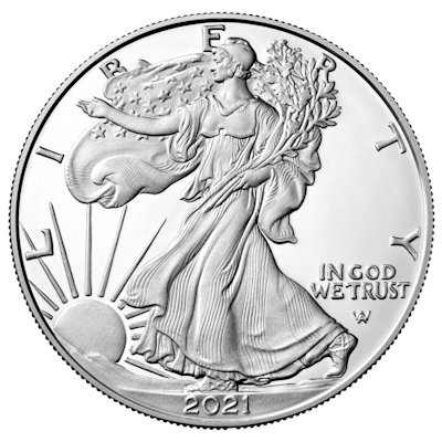 Die TYPE 2 Silver Eagle 2021 Ausgabe in höchster Prägequalität polierte Platte mit Original Samt-Etui, Umverpackung und Echtheitszertifikat. Die 2021er Ausgabe ist leider extrem schwer zu bekommen und daher stehen auch nur wenige Stücke mit entsprechendem Preisaufschlag zur Verfügung. Es handelt sich hier um die Ausgabe San Francisco.