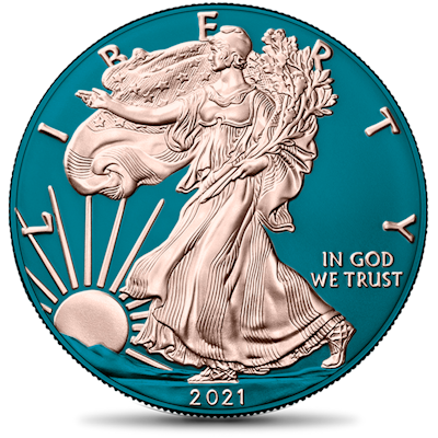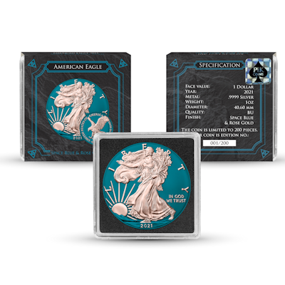 <<< USA - 1 USD Silver Eagle Space Blue & Rose Gold 2021 - 1 Oz Silber Space Blue | |