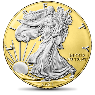 <<< USA - 1 USD Silver Eagle Gold 2021 - 1 Oz Silber Color Gold | |