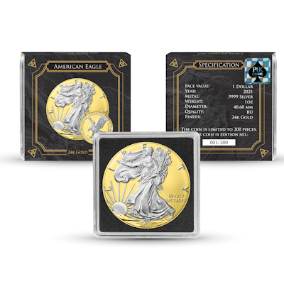 Technische Daten: Ausgabeland: USA Prägeanstalt: The United States Mint Ausgabejahr: 2021 Nennwert: 1 USD Material: Silber Gewicht: 31,10300g Durchmesser: 40,60 mm Dicke: 2,98 mm Auflage: 200 Stück Prägequalität: Stempelglanz, coloriert in Gold Verpackung: Gekapselt mit Umverpackung mit nummerierter Produktkarte |