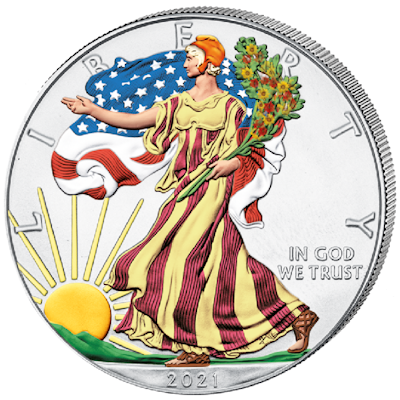 <<< USA - 2*1 USD Silver Eagle COLOR Set 2021 - 2*1 Oz Silber Color | |