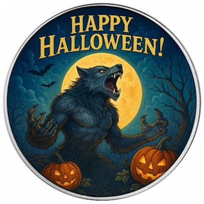 | USA - 1 USD American Silver Eagle: Halloween: Werwolf im Vollmond 2025 - 1 Oz Silber Color | ||