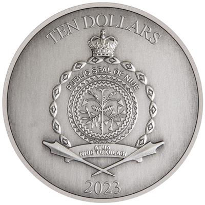 Technische Daten: Ausgabeland: Niue Prägeanstalt: New Zealand Mint Ausgabejahr: 2023 Nennwert: 10 NZD Material: Silber Gewicht: 93,30900g Durchmesser: 55,00 mm Auflage: 1.000 Stück Prägequalität: Antik Finish Veredelung Verpackung: Gekapselt im Original-Etui mit Umverpackung und nummeriertem Echtheitszertifikat |