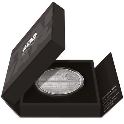 Diese offizielle Star Wars(TM) Ausgabe der New Zealand Mint zeigt den legendären Todesstern(TM) DS 1. Die 3 Oz Feinsilbermünze wurde in der höchsten Prägequalität Polierte Platte geprägt.