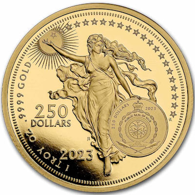 Technische Daten: Ausgabeland: Niue Prägeanstalt: Ausgabejahr: 2023 Nennwert: 250 NZD Dollar Material: Gold Gewicht: 31,10300g Durchmesser: 32,00 mm Auflage: 100 Stück Prägequalität: Stempelglanz Verpackung: Einzeln gekapselt |