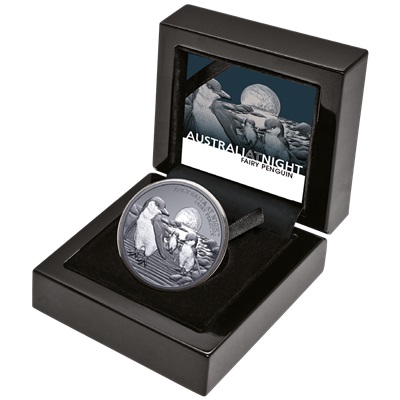 Diese 1 Oz Feinsilbermünze in Black Proof ist die 10. Ausgabe der Serie Australien bei Nacht und zeigt den Zwergpinguin. Die Auflage ist weltweit auf nur 1.000 Stück streng limitiert.