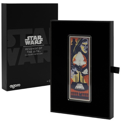 Dieses Original Star Wars(TM) Poster von Die Rache der Sith(TM) kommt als 3 Oz Feinsilbermünze in der höchsten Prägequalität Polierte Platte mit aufwendiger Kolorierung. Die Auflage ist weltweit auf nur 800 Stück streng limitiert.