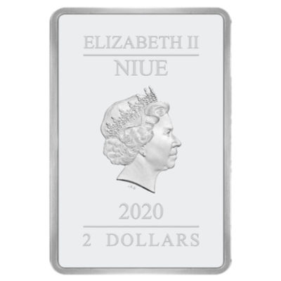 Technische Daten: Ausgabeland: Niue Prägeanstalt: New Zealand Mint Ausgabejahr: 2020 Nennwert: 2 NZD Material: Silber Gewicht: 31,10300g Durchmesser: 53x36 mm Auflage: 1.977 Stück Prägequalität: Polierte Platte, coloriert Verpackung: Gekapselt im Original-Aufsteller mit Umverpackung und nummeriertem Echtheitszertifikat |
