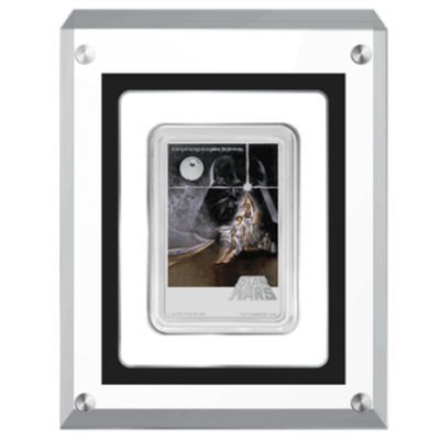 Diese 1 Oz Silberausgabe in rechteckiger Form widmet die NewZealand Mint dem ersten Star Wars(TM) Kinofilm A new Hope / Eine Neue Hoffnung(TM) mit dem Original Filmposter von 1977 wunderbar coloriert. Die Auslieferung erfolgt im Original-Etui mit Umverpackung und nummeriertem Echtheitszertifikat.