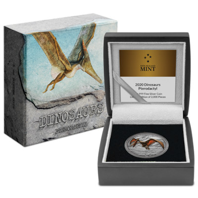 Die NewZealand Mint startete 2020 diese Dinosaurier Sammlermünzenserie wobei den Auftakt wohl der bekannteste der Fleischfresser macht, kein Geringerer als der Tyrannosaurus Rex. Die Münzen bestehen aus 1 Oz Feinsilber in Antik Finish Veredelung und zudem aufwendig coloriert. Das Original-Etui der NewZealand Mint mit nummeriertem Echtheitszertifikat und szenisch gestalteter Umverpackung runden diese Sammlermünze perfekt ab. Jede Münzausgabe dieser Serie wird nur 2.000 mal weltweit verausgabt!