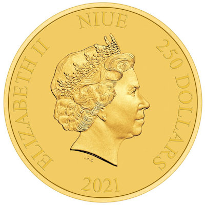 Technische Daten: Ausgabeland: Niue Prägeanstalt: New Zealand Mint Ausgabejahr: 2021 Nennwert: 250 NZD Dollar Material: Gold Gewicht: 31,10300g Durchmesser: 32,00 mm Auflage: 250 Stück Prägequalität: Stempelglanz Verpackung: Einzeln gekapselt |