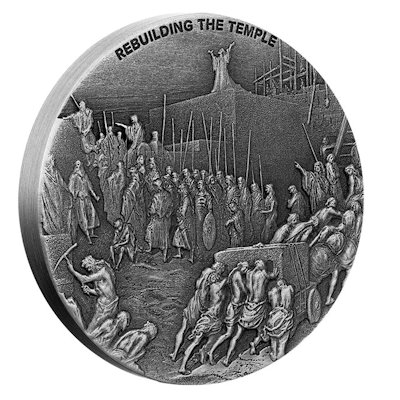 Es handelt sich hier um die 3. Ausgabe der 2021er Bibelserie und zeigt das Motiv vom Wiederaufbau des Tempels von Jerusalem (Rebuilding The Jerusalem Temple).
