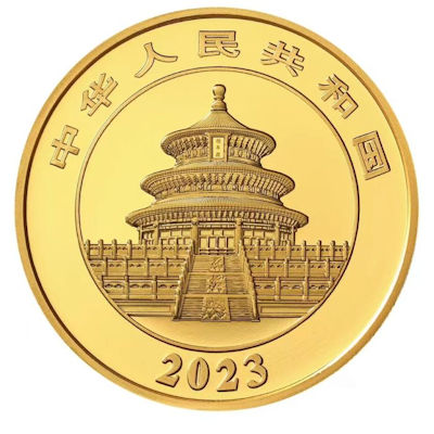 Der chinesische Gold Panda wird seit 1982 von China verausgabt und wird aus 999er Feingold geprägt. Die Münzen tragen erst seit 1983 einen Nennwert der 2001 nochmals erhöht wurde. (Bei der 1 Oz Münze von 100 Yuan auf 500 Yuan) Auf der Rückseite befindet sich der Himmelstempel und auf der Motivseite eine jährlich wechselnde Darstellungen von einem oder mehreren Pandas.
