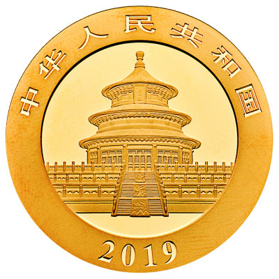 Die 2019er Ausgabe der chinesischen Goldanlagemünze in 99er Feingold mit dem beliebten Panda Motiv.