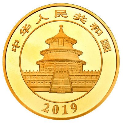 Der chinesische Gold Panda wird seit 1982 von China verausgabt und wird aus 999er Feingold geprägt. Die Münzen tragen erst seit 1983 einen Nennwert der 2001 nochmals erhöht wurde. (Bei der 1 Oz Münze von 100 Yuan auf 500 Yuan) Auf der Rückseite befindet sich der Himmelstempel und auf der Motivseite eine jährlich wechselnde Darstellungen von einem oder mehreren Pandas.