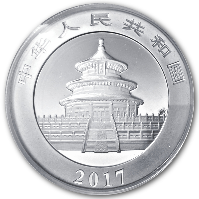 Seit 1983 wird die chinesische Anlagemünze Panda produziert. Wie auch bei den Gold Pandas zeigt hier die Rückseite den himmlischen Tempel in Beijing (Peking) und auf der Motivseite den Pandabären. Das Motiv wechselt jährlich. Nur 2001 und 2002 haben das selbe Motiv. Bis 1986 wurde der Silber Panda aus 900er Silber mit einem Gewicht von 27g geprägt. Ab 1987 dann als 1 Oz Feinsilbermünze