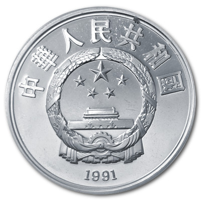 Technische Daten: Ausgabeland: China Prägeanstalt: China Gold Coin Corporation Ausgabejahr: 1991 Nennwert: 10 Yuan Material: Silber Gewicht: 27,00000g Durchmesser: 38,60 mm Auflage: 30.000 Stück Prägequalität: Polierte Platte (PP), zirkuliert Verpackung: Gekapselt |