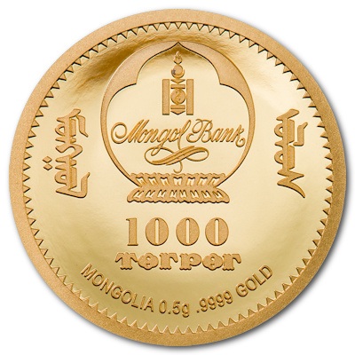 Technische Daten: Ausgabeland: Mongolei Prägeanstalt: Bank of Mongolia Ausgabejahr: 2023 Nennwert: 1.000 Togrog Material: Gold Gewicht: 0,50000g Durchmesser: 11,00 mm Auflage: 5.000 Stück Prägequalität: Polierte Platte Verpackung: Gekapselt |
