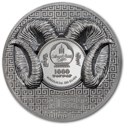 <<< Mongolei - 1.000 Togrog Magnificent Argali 2022 - 2 Oz Silber Black Proof | |