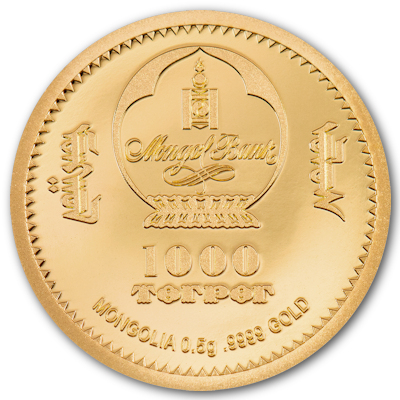 Technische Daten: Ausgabeland: Mongolei Prägeanstalt: Bank of Mongolia Ausgabejahr: 2022 Nennwert: 1.000 Togrog Material: Gold Gewicht: 0,50000g Durchmesser: 11,00 mm Auflage: 15.000 Stück Prägequalität: Polierte Platte Verpackung: Gekapselt |