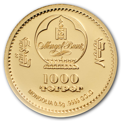 Technische Daten: Ausgabeland: Mongolei Prägeanstalt: Bank of Mongolia Ausgabejahr: 2019 Nennwert: 1.000 Togrog Material: Gold Gewicht: 0,50000g Durchmesser: 11,00 mm Auflage: 15.000 Stück Prägequalität: Polierte Platte Verpackung: Gekapselt |