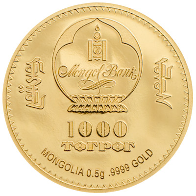 Technische Daten: Ausgabeland: Mongolei Prägeanstalt: Bank of Mongolia Ausgabejahr: 2019 Nennwert: 1.000 Togrog Material: Gold Gewicht: 0,50000g Durchmesser: 11,00 mm Auflage: 5.000 Stück Prägequalität: Polierte Platte Verpackung: Gekapselt |