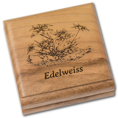 Das Edelweiss ist eine der bekanntesten, aber auch am stärksten gefährdeten Pflanzen der Alpen. Diese botanische Rarität, ein Symbol für Berge und unberührte Natur, ist in den meisten Gebieten für Wanderer vor dem Pflücken geschützt. Es kann auch in der Mongolei, dem Ausgabeland, gefunden werden. Das Edelweiss steht für Attribute wie Mut, Loyalität und Gemeinschaft. Die Münze besteht aus 1 Oz Feinsilber in einer speziellen Shape Prägung (smartminting) und in Antik Finish veredelt und auf nur 2.500 Stück streng limitiert. Die Auslieferung erfolgt im Original-Etui mit Echtheitszertifikat.