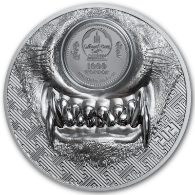 <<< Mongolei - 1.000 Togrog Mystic Wolf 2021 - 2 Oz Silber Black Proof | |