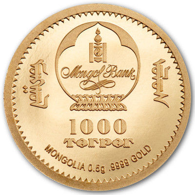 Technische Daten: Ausgabeland: Mongolei Prägeanstalt: Bank of Mongolia Ausgabejahr: 2022 Nennwert: 1.000 Togrog Material: Gold Gewicht: 0,50000g Durchmesser: 11,00 mm Auflage: 5.000 Stück Prägequalität: Polierte Platte Verpackung: Gekapselt |