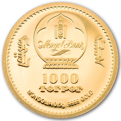 Technische Daten: Ausgabeland: Mongolei Prägeanstalt: Bank of Mongolia Ausgabejahr: 2021 Nennwert: 1.000 Togrog Material: Gold Gewicht: 0,50000g Durchmesser: 11,00 mm Auflage: 15.000 Stück Prägequalität: Polierte Platte Verpackung: Gekapselt |