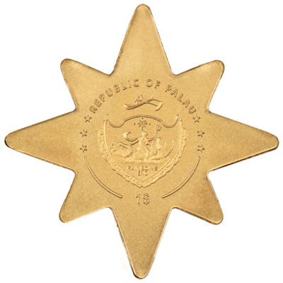Technische Daten: Ausgabeland: Palau Prägeanstalt: Palau Nennwert: 1 USD Material: Gold Gewicht: 0,50000g Durchmesser: 13,92 mm Auflage: 15.000 Stück Prägequalität: Silk Finish, Formprägung, Smartminting(c) Verpackung: Gekapselt |