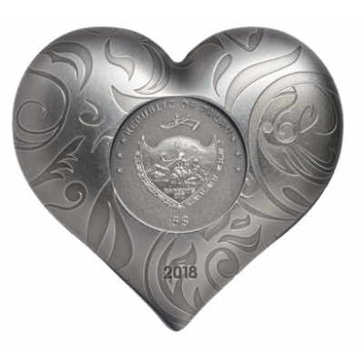 Diese Münze aus Palau zeigt nicht nur ein Herz als Motiv, sondern ist als Herz geprägt. Diese Ausgabe besticht durch das besondere Shape-Design im Extrem Smartminting HighRelief Verfahren und mit Antik Finish Veredelung. Die Münze aus Palau mit einem Nennwert von 5 Dollar besteht aus 1 Oz Feinsilber und ist auf nur 2.500 Stück weltweit streng limitiert. Die Auslieferung erfolgt im Original-Etui mit Umverpackung und nummeriertem Echtheitszertifikat.