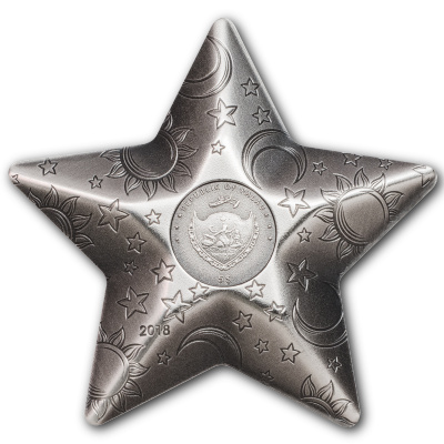 Diese Münze aus Palau zeigt nicht nur einen Stern als Motiv, sondern ist auch in Sternform geprägt. Diese Ausgabe besticht durch das besondere Shape-Design im Extrem Smartminting HighRelief Verfahren und mit Antik Finish Veredelung. Die Münze aus Palau mit einem Nennwert von 5 Dollar besteht aus 1 Oz Feinsilber und ist auf nur 2.500 Stück weltweit streng limitiert. Die Auslieferung erfolgt im Original-Etui mit Umverpackung und nummeriertem Echtheitszertifikat.