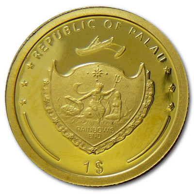 Technische Daten: Ausgabeland: Palau Prägeanstalt: Palau Ausgabejahr: 2009 Nennwert: 1 USD Dollar Material: Gold Gewicht: 0,50000g Durchmesser: 11,00 mm Auflage: 15.000 Stück Prägequalität: Polierte Platte (Proof) Verpackung: Gekapselt |
