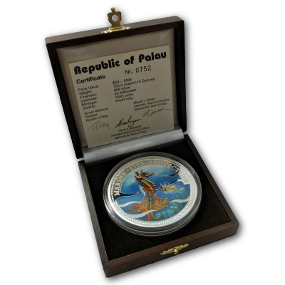 Es handelt sich bei dieser wunderschön colorierten 5 Oz schweren Feinsilbermünze um die 1995er Ausgabe aus der Reihe Marine Life Protection. Von Palau mit einem Nennwert von 20 Dollar ausgegeben, geprägt in der höchsten Prägequalität Polierte Platte und zudem limitiert auf nur 1.500 Stück weltweit. Die Auslieferung erfolgt im Original-Holz-Etui mit nummeriertem Echtheitszertifikat.