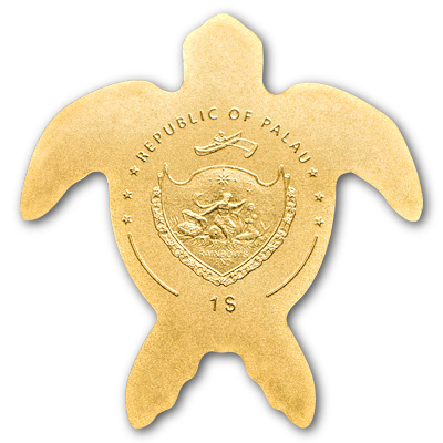 Diese Goldmünzen Formprägung zeigt eine Schildkröte aus reinstem Gold. Die Ausgabe setzt die geformten Goldmünzen aus Palau fort. Die Goldmünze besteht aus 9999er Feingold und hat einen Nennwert von 1 Dollar. Die Ausgabe ist auf nur 15.000 Stück weltweit streng limitiert.