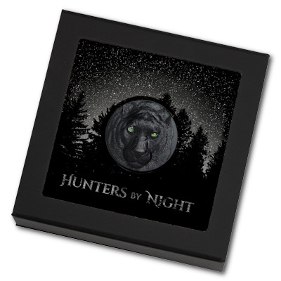 2020 startete CIT mit dem Black Panther die neue Serie Hunters by Night. Die Münzen bestehen aus 2 Oz reinstem Silber und sind zudem mit Obsidian Black und Smartminting(C) Verfahren geprägt und veredelt. Die Ausgaben sind auf jeweils nur 888 Stück weltweit limitiert. Die Münze kommt im Original-Sicht-Etui mit Umverpackung und Echtheitszertifikat. Der Nennwert beträgt 10 Dollar und das Ausgabeland ist Palau.