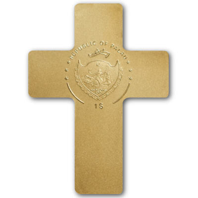 Diese 0,5g Schwere Goldmünze zeigt ein goldenes Kreuz. Die Ausgabe setzt die geformten Goldmünzen aus Palau fort. Die Goldmünze besteht aus 9999er Feingold und hat einen Nennwert von 1 Dollar. Die Ausgabe ist auf nur 15.000 Stück weltweit streng limitiert.