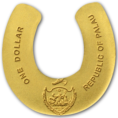 Diese 0,5g Schwere Goldmünze zeigt ein goldenes Hufeisen (Horseshoe). Die Ausgabe setzt die geformten Goldmünzen aus Palau fort. Die Goldmünze besteht aus 9999er Feingold und hat einen Nennwert von 1 Dollar. Die Ausgabe ist auf nur 15.000 Stück weltweit streng limitiert.