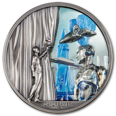 Wer ist nicht neugierig auf die Zukunft? Diese Person ist es definitiv. So öffnet er den magischen Vorhang, um zu entdecken, was ihn in der Zukunft erwartet. Dank der verbesserten smartminting®-Technologie zeigt diese Münze diese Geschichte auf einer atemberaubenden 1-oz-Silbermünze. Entdecken Sie den beeindruckenden Kontrast aus Antik-Finish vor dem Vorhang und einem raffinierten farbigen Proof-Bereich dahinter, der futuristische Fahrzeuge, Gebäude und Roboter in ultrahohem Relief zeigt. Diese auffällige Münze gibt Ihnen das Gefühl, in einem Theater zu sitzen und alle freuen sich auf das, was sich hinter dem Vorhang befindet. Holen Sie sich eines von nur 1500 Stück und seien Sie Teil dessen, was die Zukunft bringen könnte. |