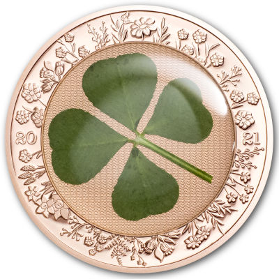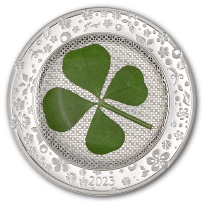 Die 2025er Ausgabe weist ein leicht überarbeitetes Design auf, das der Geschichte der Serie treu bleibt und gleichzeitig einen modernen neuen Look bietet. Ob Silber oder Gold, ob als Sammlermünze, als Geldanlage, als Glücksbringer oder als Geschenk, die Kleeblattmünze ist immer ein besonders charmanter Blickfang! Und nicht zu vergessen: Jede einzelne Münze dieser Serie ist seit ihrem Start mit einem ECHTEN vierblättrigen Kleeblatt versehen. |