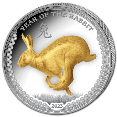 Palau - 5 USD Jahr des Hasen 2023 - 1 Oz Silber PP Gilded | ||