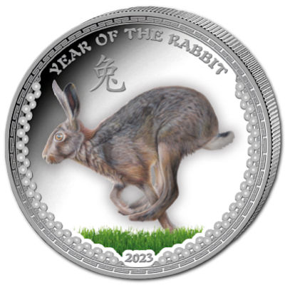 Palau - 5 USD Jahr des Hasen 2023 - 1 Oz Silber PP Color | ||